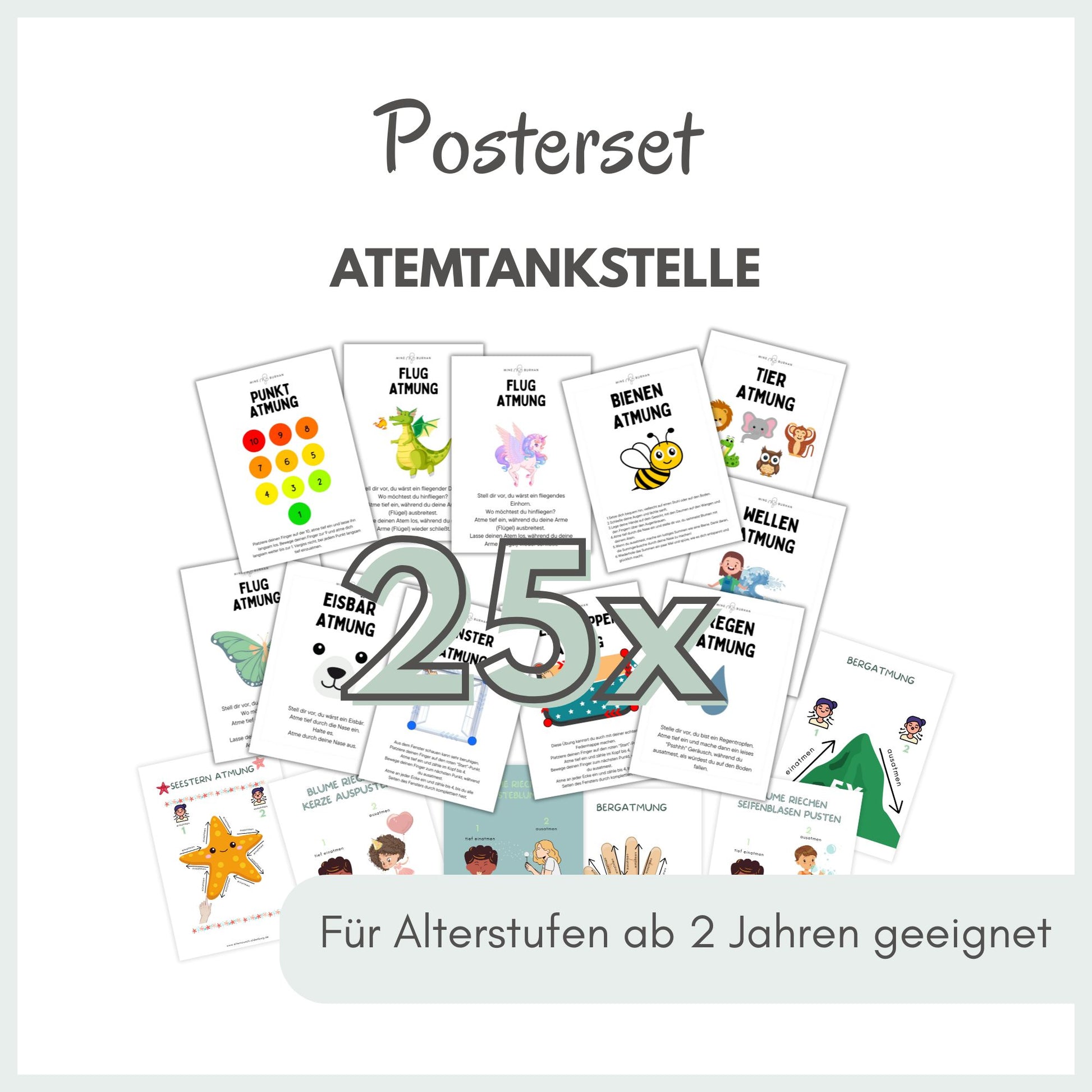 Tauche ein in die wunderbare Welt der Atmung mit unserem Poster-Set "Atem-Tankstelle"! Dieses Set besteht aus 25 Poster für alle Altersstufen ab 2 Jahren, um ihnen spielerisch zu helfen, ihre Atmung zu verbessern und sich zu entspannen.